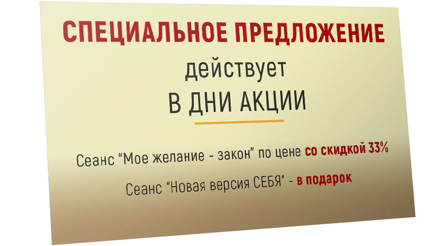Вы получаете сеанс "МОЕ ЖЕЛАНИЕ - ЗАКОН" + подарок.
