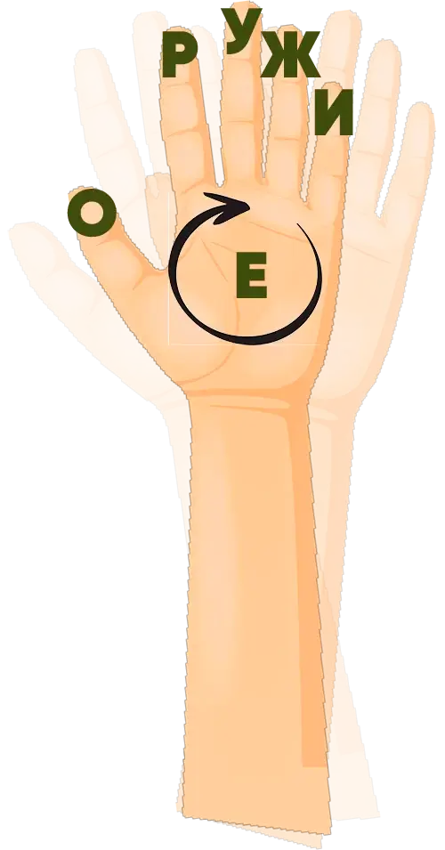 все вместе (пять пальцев в кулак) — для входа в состояние полного потока.