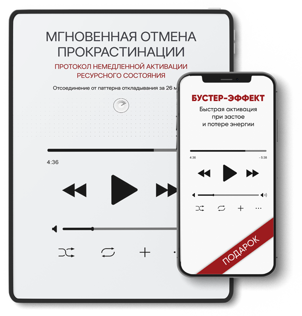 Протокол "Мгновенная отмена прокрастинации" убирает паттерн откладывания. "Бустер-эффект" даёт энергию и активацию